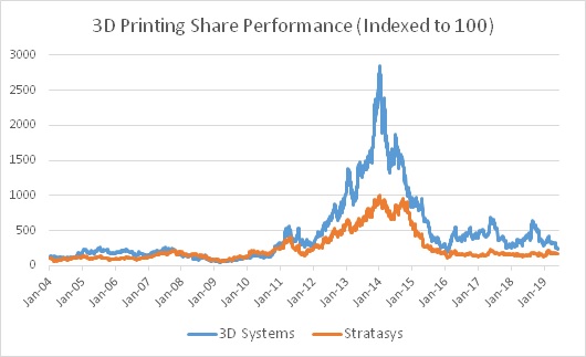 Let’s look at the share-price performance of two of the largest pure-play 3D printing companies.